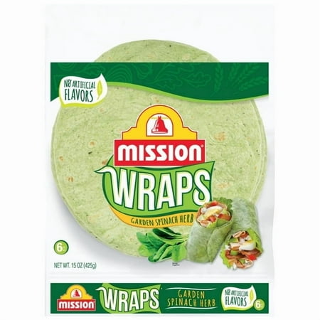Add some gourmet flair to your next meal with the natural flavors of Mission Garden Spinach Herb Wraps. Whether you fill them with hummus cold cuts or fresh veggies the soft texture and savory flavor profile of our wraps will enhance those ingredients even more. Our wraps are also a great addition to any diet because they re certified kosher and don t contain any artificial flavors or colors trans fat or cholesterol. Includes one 6-count package of Mission Garden Spinach Herb Wraps.