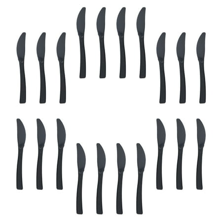 Description This is a set of 48pcs disposable knives which are made of premium plastic material safe for use. Its smooth black surface makes the set match with any party decorations and so it will decorate successfully any dinner table. Also suitable for various of parties like wedding birthday and so on. Features -Color: Black. -Material: Plastic. -Size: 16.3x1.5cm. - Made of plastic these delicate knives perfectly replace the metallic tableware. - Simple and stylish appearance makes the flatware perfect for your special events. - Suitable for graduation party dinner reception table carnival etc. - Lightweight and mini size is suitable for carry outside. - Can also be easily integrated in the everyday use too at a regular lunch in the children s lunchbox at a picnic when traveling or camping.