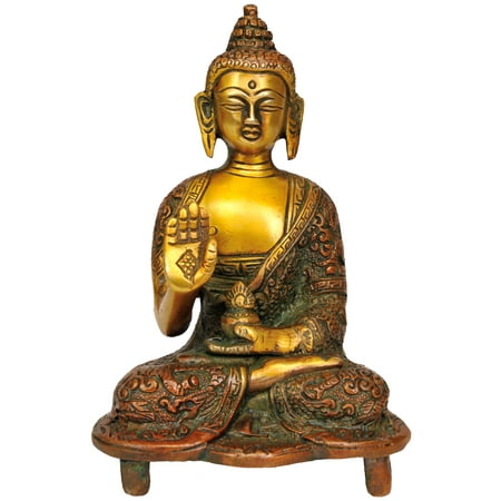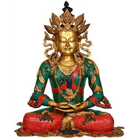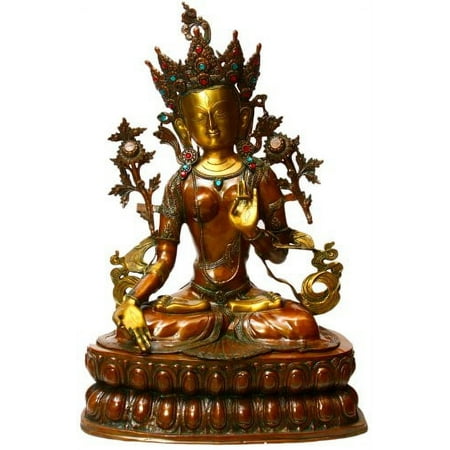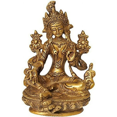 Dimensions: 34.4 inch X 23 inch X 15.3 inchBrass Sculptures: Buy Ganesha Buddha & Nataraja Sculptures ExoticIndiaBrass SculptureWhite Tara has always been visualized as the Divine Mother or the Mother of the entire cosmos. Supremely compassionate she constantly showers forth blessings on her children. Thus her right hand is always in the mudra of bestowing boons. The other hand grants the reward of fearlessness. A mother instills in us the seeds of righteous karma. Those who follow such a path know that they need not fear anything. As the Bhagvad Gita states: Wherever we are whether scaling the heights of mountains or at the depths of oceans our good deeds come to protect us. According to Deepak Chopra: when we choose actions that bring happiness and success to others the fruit of our karma is happiness and success. By acquainting us with this fact and establishing it in the very depth of our consciousness our mother insures our continuous well being.Calmly and serenely poised the Mother of all presents a picture of reassurance and inspiring confidence. From the delicate fingers of her two hands issue stems terminating into a full blown lotuses. These all associate the Mother Goddess with organic growth and the vegetative principle in nature.Tara is beautiful as all mothers are. Her rich and precious jewelry is as much an acknowledgement of the superior status of the mother in the hierarchy of human relations as it is of the supremacy of Goddess Tara in the Buddhist pantheon.