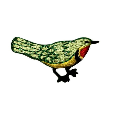 ID 0539 Tiny Finch Patch Swallow Standing Staring Embroidered Iron On Applique. New embroidered iron on patch. Size is approximately 1 1/2 wide and 1 tall.