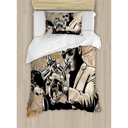 Jazz Music Duvet Cover Set Grunge Style Illustrat...