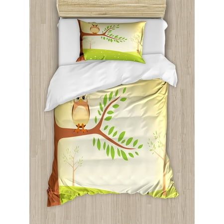 Owl Print Duvet Cover Set Cartoon of Lonely Wise ...