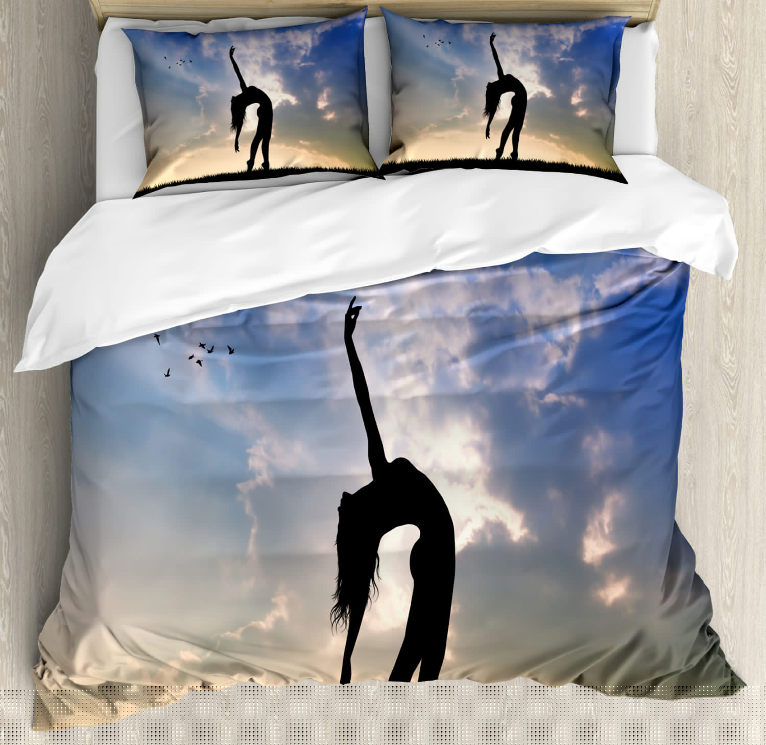 Girls Duvet Cover Set Queen Size Silhouette of Gi...