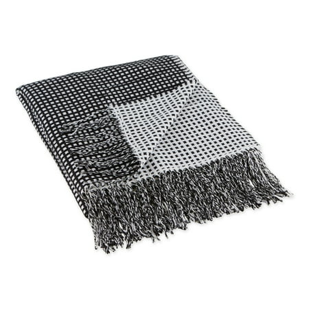DII Black & White Waffle Knit Throw - CAMZ12255 Throw measures 50x60 inches made of Acrylic with Fringe Stylish and cozy and an easy way to add color and texture to freshen your home for spring or warm it up in the winter. These throws have a very chic and trendy look throw over a couch chair or bed to add a splash of color and provide warmth on a cold night. Use DII throw blankets not only to keep cozy or as a decor piece but give away as an easy and useful housewarming or holiday gift take to the beach or use for picnics or camping Machine wash colors separately wash in cold water gentle cycle tumble dry low.