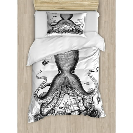 Octopus Duvet Cover Set Twin Size Monochrome Sket...