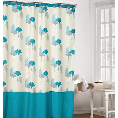 Give your bathroom a natural and modern look with this off-white color fabric shower curtain with light blue gray and turquoise gingko leaf design. The light blue gray and turquoise colors complement on a solid off-white background to create a modern crisp and refreshing decor.