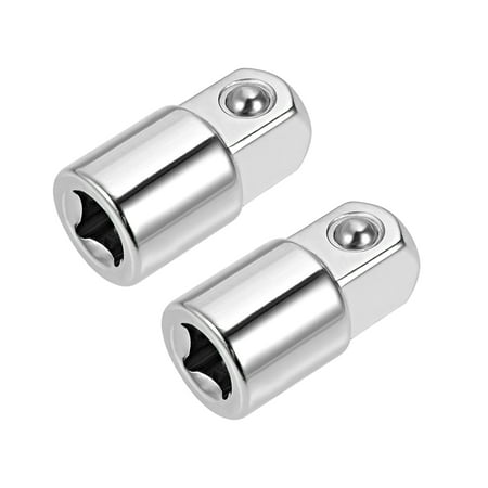 Uxcell 1/4 F to 3/8 M Female to Male Socket Reducer Chrome Vanadium Steel Silver 2pcs Made from heat treated chrome vanadium steel with chrome finish for extra durability and corrosion-resistant. Chamfered ends and ball detent provides a secure hold onto sockets and prevents them from dropping. Detent notches in socket ends lock onto ratchets and extensions. Wide application in automotive repairs household maintenance and most general repairs.