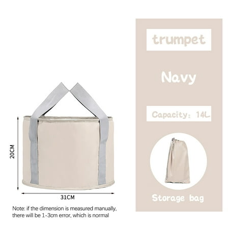 Foldable Foot Soaking Bucket - Large Capacity 31X20CM Portable Water Basin with Tote Straps Heat-Resistant Up to 90°C - Includes Storage Bag Features: Foldable portable and lightweight. Double-layer structure sturdy lifting special sewing process without pressure glue. Can withstand 90°C hot water. Good stability: easily deformed and side leakage with two tote belts filled with water and stand flat ground that will fall down. Product Description: Material: cloth Size: When opened 31X20CM Package contains: 1 Piece Folding Bucket 1 Piece Storage Bag