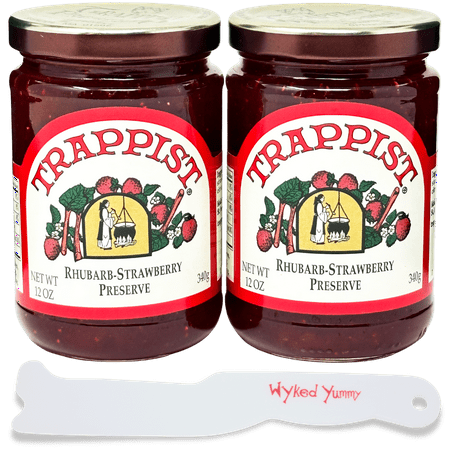 You will receive (2) 12-ounce (340g) jars of delicious Trappist Rhubarb-Strawberry Preserve and (1) Wyked Yummy Plastic Spreader. Add this treat to any yogurt or ice cream for a little extra YUM! Spread it on toast crackers pancakes waffles muffins cookies and anything else you would enjoy this on. Or just eat it out of the jar. :) Add a little melted chocolate to it for a delectable tastebud surprise.