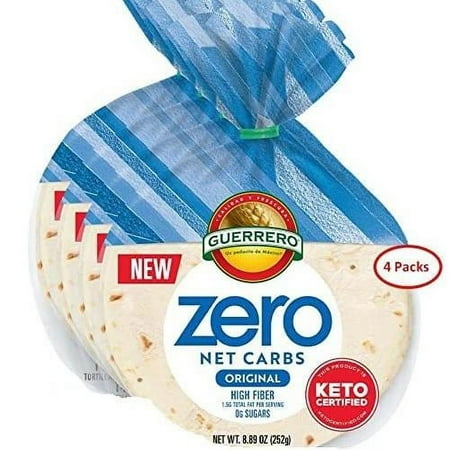 Four 14-count packages of Mission Zero Net Carbs Original Tortillas 0g of net carbohydrates per serving Zero sugar and no trans or cholesterol Delicious addition to all of your favorite low carb recipes