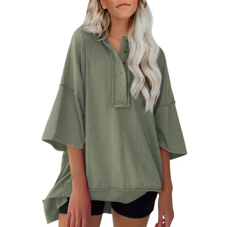 YeJammarp Oversized Cotton Tops 3/4 Sleeve Summer ...