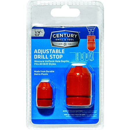 Designed to help you drill to exact depths this Century adjustable drill stop set ensures consistent and repeatable results in wood metal plastic and more eliminating the guesswork from your projects. Improve your efficiency and accuracy with every hole making these ideal for woodworking cabinetry metalworking and other precision drilling applications that demand clean uniform depths. The small drill stop collar securely fits drill bits from 1/16” to 15/64” giving you tight control over smaller drill sizes often used for pilot holes and intricate tasks. The large drill stop fits ¼” to ½” drill bits making it perfect for more heavy-duty or deeper drilling tasks that require consistent results without over-penetration. Quickly and easily position the stop at your desired depth and lock it in place for reliable slip-free drilling making this an essential accessory for professionals and DIYers alike.