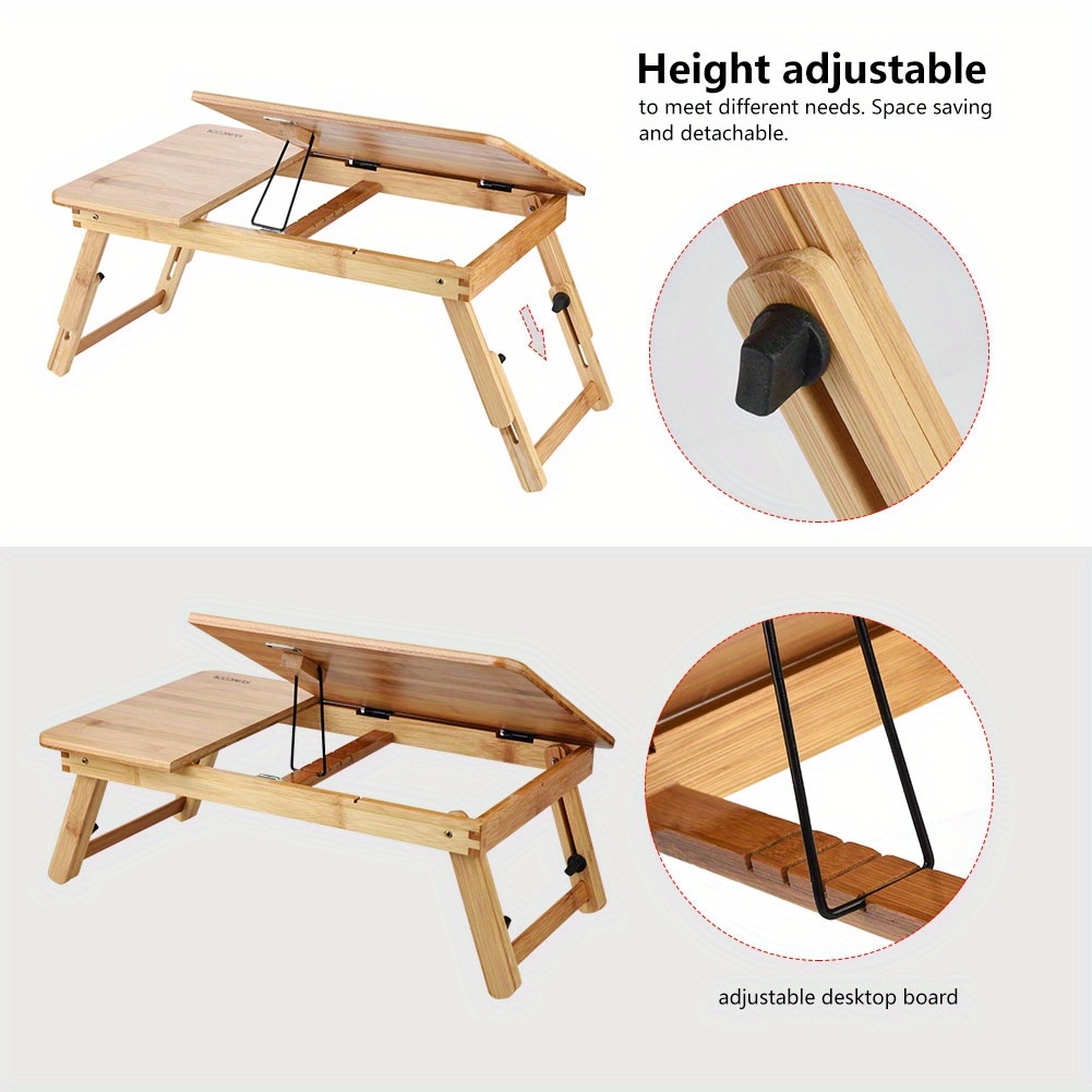 Our TeqHome versatile lap desk for bed features adjustable height and tilt angles to improve posture and reduce neck/eye strain. The laptop desk includes a built-in cooling fan LED lamp with flexible wand 4 USB ports and storage compartments. Its foldable design with anti-slip baffles works as a laptop desk for bed workstation breakfast tray or reading table - easily storing flat when not in use. Perfect for offices bedrooms or small spaces needing adaptable furniture.