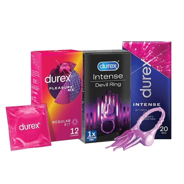 Cock ring designed to keep him harder for longer. Vibrating horns stimulate her clit adding more sensation. These condoms have ribs and dots for stimulation. This Gel is designed for intense orgasmsIncluded in this bundle:Durex Play Little Devil Vibrating Horned Penis RingCock ring designed to help keep him harder for longer. Vibrating 'horns' stimulates her clit adding more sensation during sex. Small discreet and quiet.Cock ring designed to help keep him harder for longer. Vibrating 'horns' stimulates her clit adding more sensation during sex. Small discreet and quiet.11535504535504Durex Pleasure Me Ribbed Regular Fit Condoms Pack of 12Durex Pleasure Me Ribbed Regular Fit Condoms Pack of 12Durex Pleasure Me condoms have strategically placed ribs and dots to increase physical stimulation helping to enhance her experience. They are pre-lubricated for a smoother feeling. Packaging may vary.
